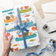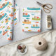 Papier d'emballage adorable avec des animaux de bois en canoë. Parfait pour les baby showers, les fêtes d'anniversaire pour les plus petits ou même les projets artisanaux amusants.