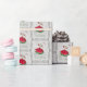 Cet adorable papier d'emballage cadeau Dachshund Christmas Caroler présente mon portrait de notre Dachshund Bernadette bleue. Elle porte une robe rouge et verte avec capuche. Elle tient un livre de chansons et elle regarde deux cardinaux sur une branche d'arbre. Comprend une bordure noire filagreement et un texte en texte vert disant, "Joyeuses Fêtes".