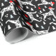 Ce motif mignon présente nos illustrations de Dalmatie portant des chapeaux de Noël avec des pins verts et blancs et des baies sèches sur un arrière - plan noir.