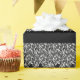 Envelopper un cadeau amusant pour le travail ou l'usage personnel dans un grand thème noir et blanc avec un arrière - plan damassé et des rangées de foule réjouissante.