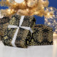 Magnifique damassé doré sur fond noir papier d'emballage. Pure élégance ! Idéal pour un anniversaire, mariage, anniversaire de mariage, enterrement de vie de jeune fille.