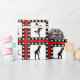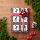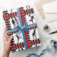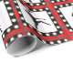 4 silhouettes différentes de danseuses de style cabaret imprimées à l'intérieur d'un cadre lumineux avec un arrière - plan en brique rouge sur papier cadeau.