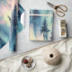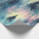 Bold dark aurora night forest pattern wrapping paper with vivid watercolor lights—ideal for nature lovers and dramatic winter theme.