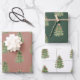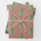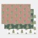 Papier cadeau de Noël rose vert Arbres de Noël Bow