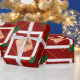 Célébrez la saison festive avec ce charmant papier d'emballage de Noël avec des boîtes cadeaux rustiques encadrées de carré blancs et ornées de feuilles saints et de baies rouges. Placé contre un arrière - plan rouge profond aux lignes géométriques dorées, ce motif répétitif ajoute une touche chaleureuse, cosy et vintage à votre emballage cadeau de vacances. Parfait pour les cadeaux de Noël, les fêtes et la décoration festive !