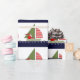 Un emballage cadeau de Noël à thème de voile créatif mettant en vedette Père Noël dans un design de voilier.