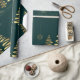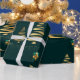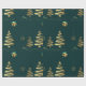Le papier d'emballage pour la célébration de Noël dans la conception avec les ornements de Noël tels que le sapin de Noël, la cloche de Noël, la couronne de Noël et les feuilles de décoration de Noël dans des imprimés rétro avec une présentation de couleur verte.
