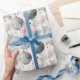 Papier Cadeau Décorations d'arbre de Noël Pastel Bleu & Blanc