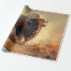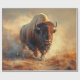 Un tableau audacieux sur le thème occidental d'un bison sauvage qui s'empare de la poussière pendant qu'il court, capturant la puissance brute et l'esprit sauvage de la frontière américaine.