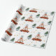 Wrap all your presents in this cute wrapping paper! This wrapping paper pattern features a holiday illustration of a deer driving a car, pulling a Christmas tree trailer.