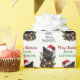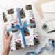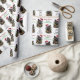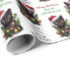 Le motif mignon sur ce papier d'emballage festif de Noël est d'un chat noir à l'air dérouté portant un casquette de Père Noël rouge et blanc. Il est enchevêtré dans un chapelet de lumières des arbres de Noël. L'image est répétée à travers la surface, avec du texte noir qui dit "Cher Père Noël, Définissez NAUGHTY". Votre propre salutation et signature personnalisée est également en rouge et vert.