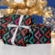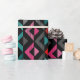 Ce papier d'emballage a un design géométrique de demi-diamants qui se répand à travers le design en couleurs de décoloration.