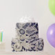 La belle dentelle point-de-rose sur fond bleu marine fait un papier d'emballage époustouflant.