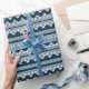 Papier Cadeau Dentelle blanche rétro avec papillons sur un bleu