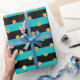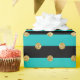 Turquoise - Aqua Blue et Black Stripes avec Gold Foil Pois fête d'anniversaire Motif.