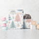 De délicieux motifs d'arbres pastel et d'ornements dans des teintes douces créent un cadre fantasque parfait pour l'emballage cadeau de vacances. Les charmantes illustrations évoquent un esprit chaleureux et festif pour la saison.