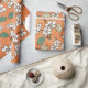 Motif de fleurs blanches avec feuilles verts sur arrière - plan orange