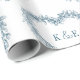 Mistletoe ligne botanique art monogramme art mariage papier d'emballage cadeau en bleu sur blanc. D'autres couleurs et objets correspondants sont disponibles. © Dessin et dessin de la feuille d'origine par Sarah Trett pour www.mylittleedenweddings.com sur Zazzle.