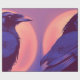 Dessin d'un corbeau orange violet sur un arrière - plan violet rose orange