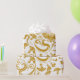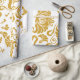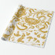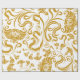 Papier Cadeau dessins floraux dorés et en spirale sur fond blanc
