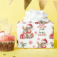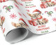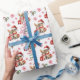 Le motif répété sur ce papier d'emballage de Noël est de deux petits Chihuahua marron. Chacun porte un collier rouge de Fêtes, et l'un porte un chapeau de Père Noël rouge et blanc. Des emballages de cadeaux très bien emballés s'assoient à côté d'eux. Le texte rouge indique MERRY CHRISTMAS", avec votre nom choisi et votre signature ci-dessous. Les autres images incluses dans la motif sont des flocons de neige et des sucres de canne décoratifs rouges.