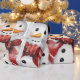 Deux mignons bonhommes de neige en chapeaux et écharpes avec des arcs rouges et rouges.