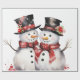 Papier Cadeau Deux Snowman en chapeau supérieur et Écharpes roug