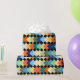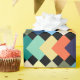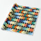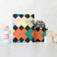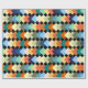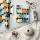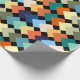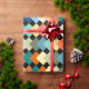 Ce papier d'emballage a une conception géométrique de diamants de couleur claire se chevauchant sur un champ de noir.