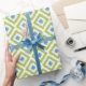 Papier Cadeau Diamants verts bleu Motif Ikat