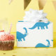 Un papier d'emballage mignon comportant un dinosaure bleu avec une cravate d'arc.