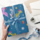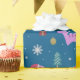 J'espère que vous aimez cet arrière - plan bleu avec un mignon dinosaure portant un casquette du Père Noël.