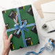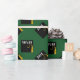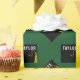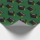 Emballage de cadeau de graduation créatif et décoration de fête avec chapeau de graduation noir et or sur fond vert. Pour personnaliser, éditez le texte pour ajouter son nom et l'année de la promotion.