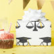 Emballage cadeau créatif pour la remise des diplômes de la faculté de droit pour diplômé en droit avec un classique chapeau noir avec un gland doré et un motif de balance de la justice.