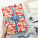 Emballage cadeau coloré pour les soirées de bowling, recouvert d'épingles de bowling et de boules de bowling sur un plan de bowling rayé