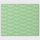 Papier d'emballage de fin de doctorat dans des tons vert clair. Le mot PhD se répète dans un motif sur toute la longueur de ce papier d'emballage.