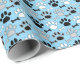 Papier Cadeau Dog Paw Prints and Bones Pattern Blue