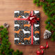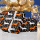 Papier Cadeau Dots Dachshund blanc et orange sur Halloween noir