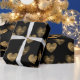 Papier Cadeau Doubler les Coeurs d'Amour Or sur Noir