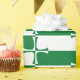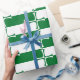 Papier d'enveloppement avec design avec un drapeau du comté historique de Kirkcudbrightshire, en Ecosse, Grande-Bretagne; drapeau vert et blanc avec croix de Cuthbert