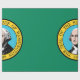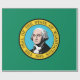 Ce dessin est orné du drapeau de l'État de Washington, qui est situé dans la région Pacifique Nord-Ouest des États-Unis. Il porte le nom de George Washington (1732-1799), le premier président américain. Washington est souvent appelé l'État de Washington pour le distinguer de la capitale du pays, Washington DC. Le drapeau représente le sceau de l'État, qui contient une image du nom d'État George Washington, sur un champ de vert foncé. C'est le seul drapeau de l'état américain à avoir un champ vert ; c'est aussi le seul drapeau de l'état qui contient l'image d'un président américain.