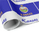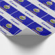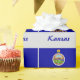 Enveloppez vos cadeaux dans le style du Kansas avec ce document qui comporte la conception distinctive en bleu et or du drapeau d'état du Kansas. Sous chaque image de drapeau est le texte personnalisable en manuscrit bleu le "Kansas". Les images et le texte de drapeau sont placés sur un arrière - plan de gris argenté.