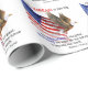 Le drapeau américain et un aigle de vol accentuent la citation inspirée de Donald Trump au sujet de rêver grand. Les couleurs patriotiques du travail de rouge, blanc et bleu bien pour les mots de inspiration du quarante-cinquième président des Etats-Unis.