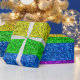 Papier cadeau avec drapeau Sparkly LGBT en brillant rouge, orange, jaune, vert, bleu et violet brillant parties scintillant. *photo de scintilles pas de parties scintillant réelle!