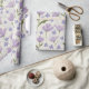 Ce papier d'emballage présente un motif de fleurs pourpres poussiéreuses avec des feuilles verts dressés contre un arrière - plan couleur crème ou ivoire pour un look joli et moderne.