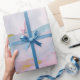Le design a été créé numériquement à Photoshop. Ça joue bien avec les couleurs rose et bleue. Les accents dorés donnent une noble note à ce papier cadeau.