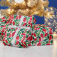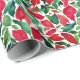 Papier Cadeau Eau De Noël Rouge Et Vert Feuille
