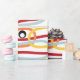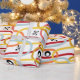 Ce papier d'emballage a un design moderne du milieu du siècle de gribouillages tournant verticalement dans des couleurs rétro avec des éclats noirs et des cercles éparpillés sur le design.