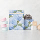 Le papier d'enveloppement éclatant de fleurs bleues présente des hydrangées luxuriantes en pleine floraison, parfaites pour les cadeaux de printemps, les fêtes de jardin et les célébrations élégantes.