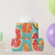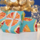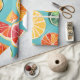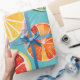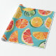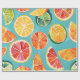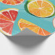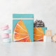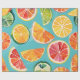 Cette oeuvre présente un motif d'agrumes vivant et rafraîchissant, avec des tranches d'oranges, de citrons, de citrons et de pamplemousses vibrantes contre un arrière - plan turquoise et éclatant. Les tranches de fruits juteuses et colorées sont représentées avec une approche ludique et stylisée, saisissant l'essence de l'été et de la fraîcheur. L'utilisation de couleurs audacieuses et contrastées et l'agencement circulaire des fruits créent une composition dynamique et attrayante qui respire énergie et zeste.