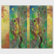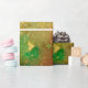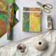 Peinture d'aquarelle Whimsical, colorée et vibrante avec feuille d'or et d'argent dans les couleurs jaune, vert, rouge.